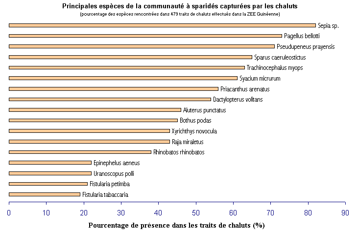 Principales espèces de la communauté à sparidés capturées par les chaluts