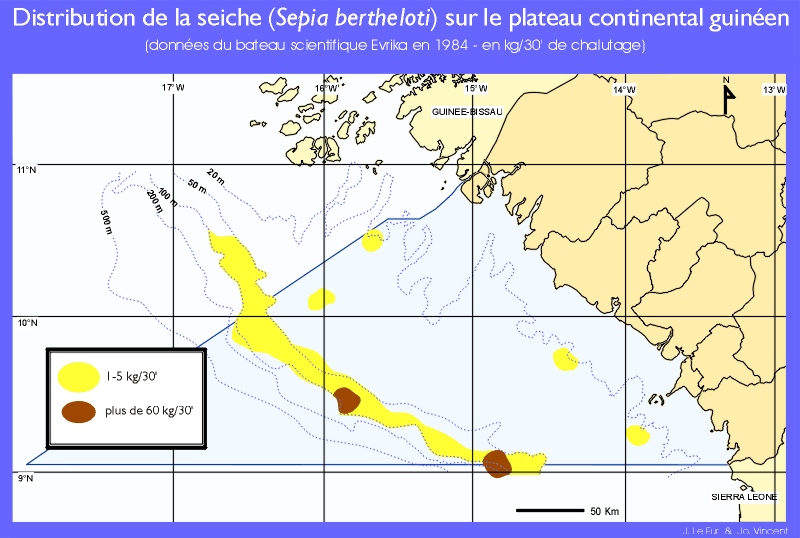 les isobathes 20-120 m; deux espèces de seiches sont d'une grande importance du